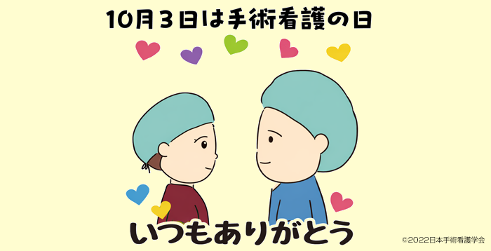 2021年、患者さんやご家族に安心・安全な手術医療、手術看護を提供している手術室看護師の役割や活動について、広く一般の方に理解を深めていただくために、10月3日(第1回日本手術室看護学会が開催された日)を「手術看護の日」と制定しました。