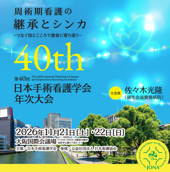 | お問い合わせ先 | 日本手術看護学会 事務局 〒113-0033 東京都文京区本郷3丁目26-1 本郷宮田ビル5階 TEL 03-3813-0485 FAX 03-3813-0539 |